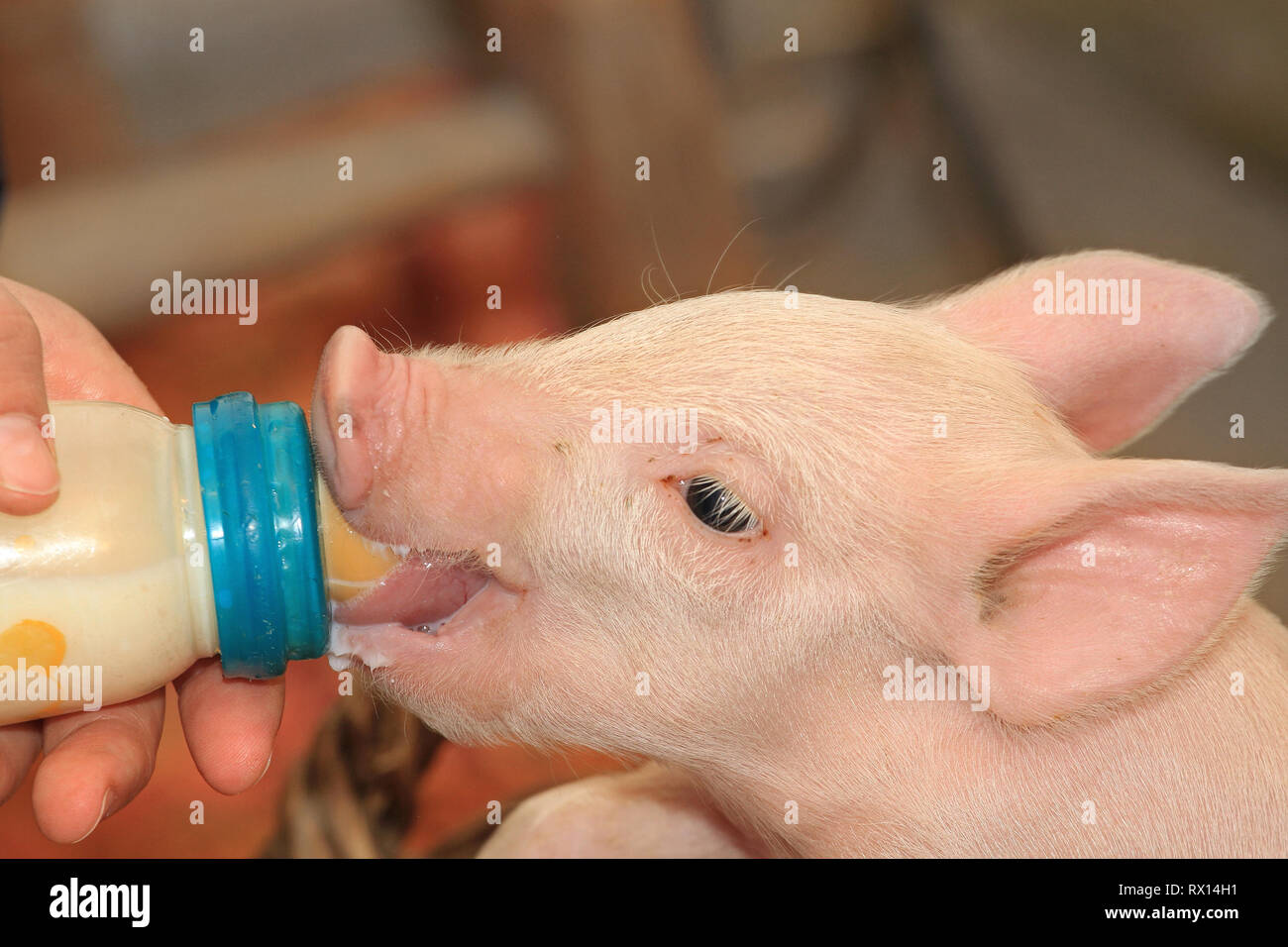 Small Baby Piglet Feeding From Milk Bottle Stock Photo Alamy